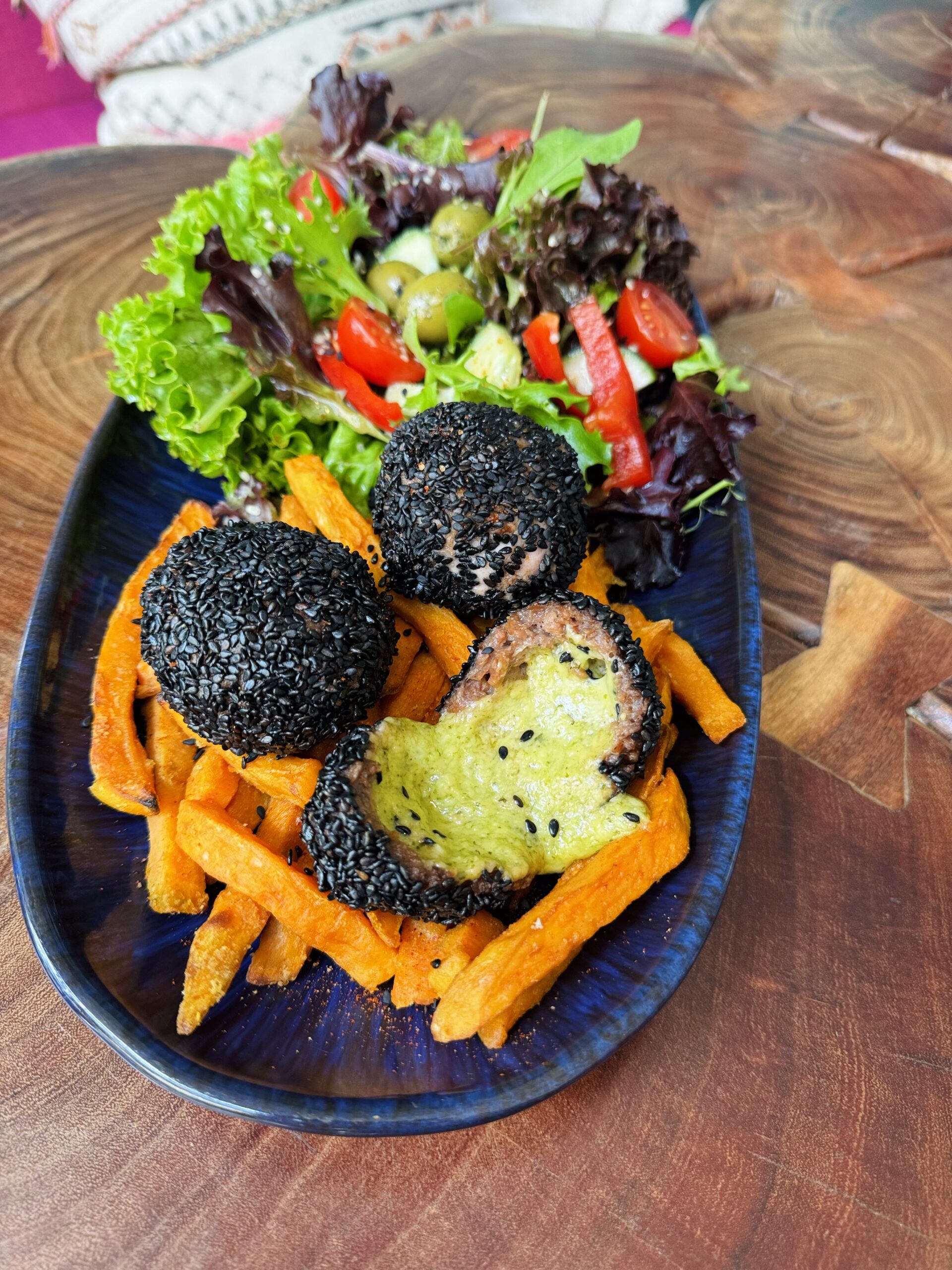 Statt Zucker wird z.Bsp. mit Beeren, Fruchten, Stevia/Erythrit oder Medjool Datteln gesüßt. Der Teig wird kreiert aus leckeren und wertvolle Zutaten: Goldhirsemehl, Buchweizenmehl, Nussmehle,
